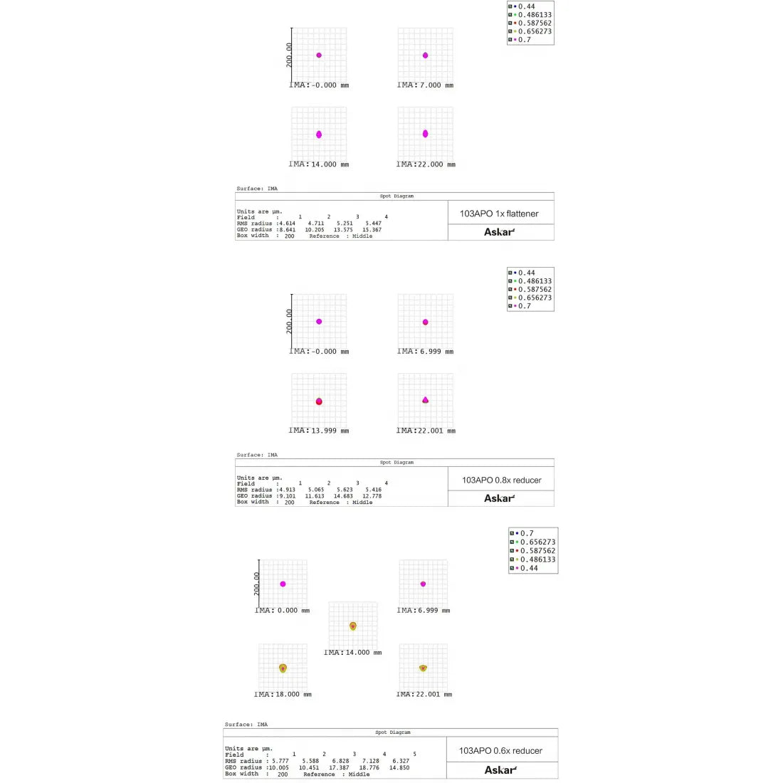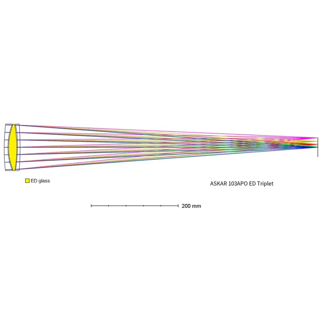 Askar 103APO adopts a triplet air-spaced APO lens design, including one piece of ED glass.