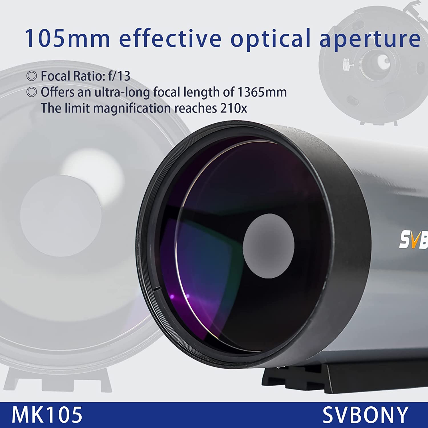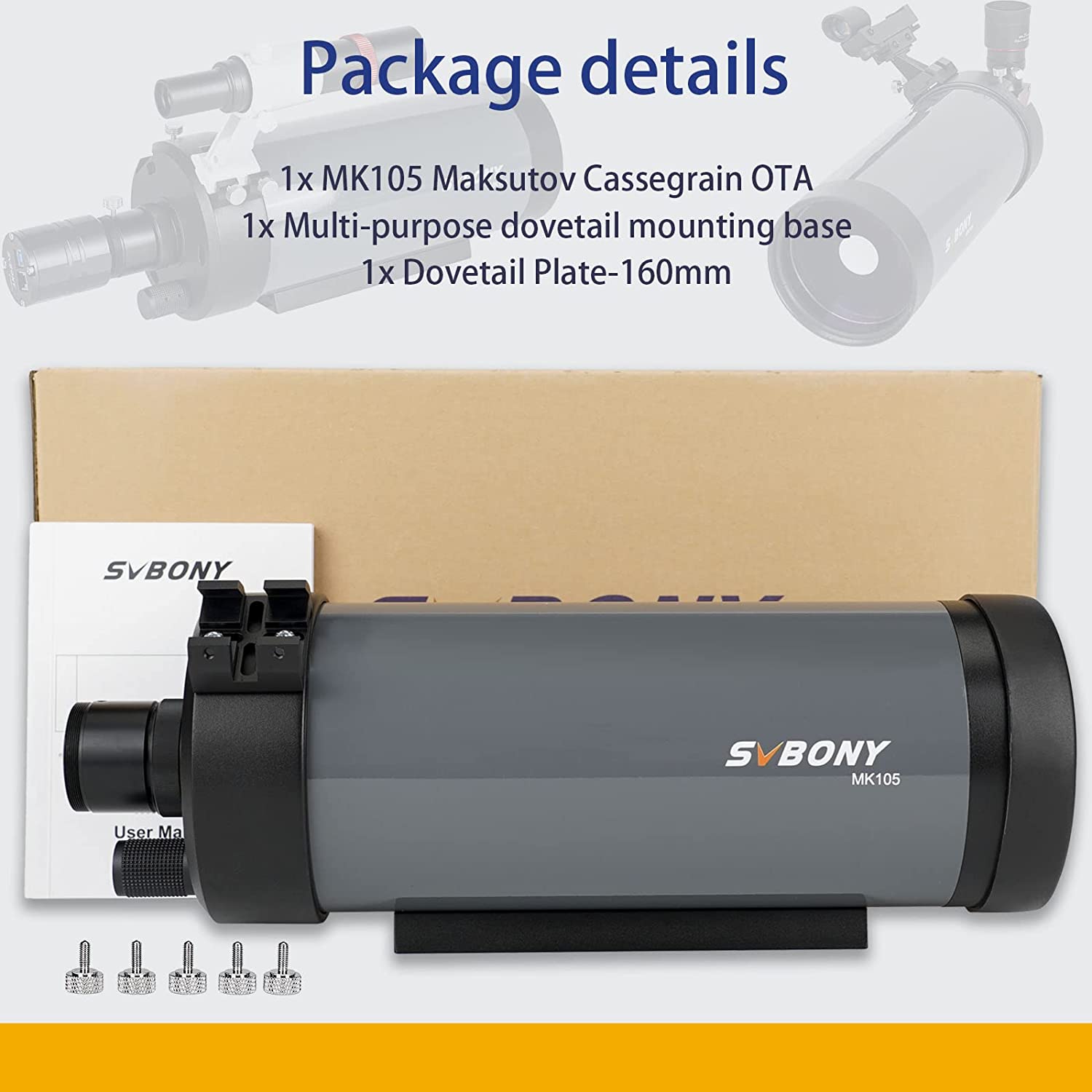 SVBONY MK105 Telescope, 105mm Aperture Maksutov Cassegrain OTA, 99% Reflectivity Dielectric Coatings Catadioptric Telescope, for Planetary Visual and Photography with 160mm Dovetail Plate